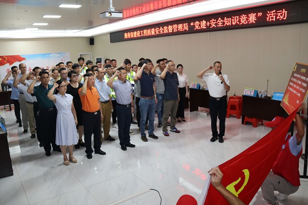 為推進基層黨組織聯建共建,深入開展全國“安全生產月”活動,落實公司關于安全生產工作的要求,牢固樹立安全發展理念,七一前夕,海南萬泰公司組織隊伍參加了由海南省建設工程質量安全監督管理局舉辦的“黨建+安全知識競賽”活動,省廳張運臻處長,省質安局陳雷書記、劉長征副局長等有關領導參加活動。
