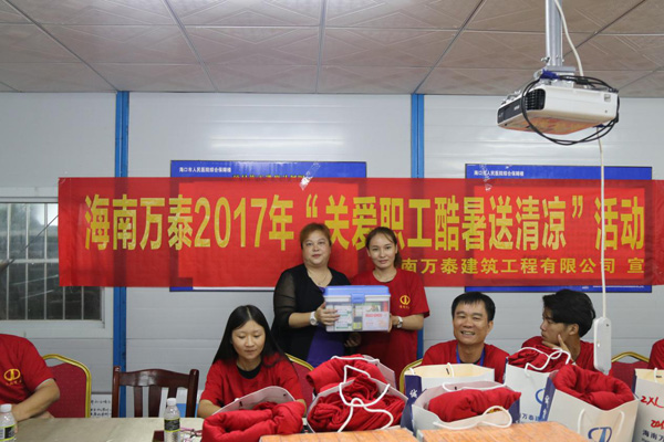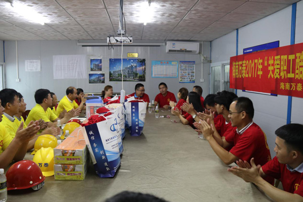 海南萬泰在追求企業(yè)發(fā)展的同時(shí),始終把民工利益擺在重要位置,關(guān)愛民工工作生活。長期以來,海南萬泰都對(duì)一線工人的生產(chǎn)生活格外重視,通過節(jié)日慰問、送清涼等一系列活動(dòng),深切表達(dá)公司領(lǐng)導(dǎo)及同事對(duì)長期駐扎一線的項(xiàng)目工人的關(guān)懷之情。