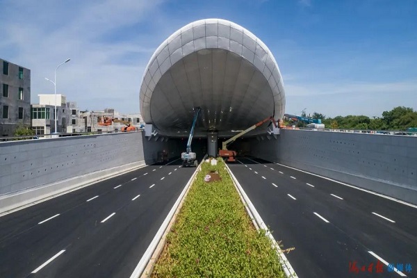 據(jù)介紹,海口地處熱帶,夏季高溫多雨,秋季多臺風(fēng),為施工的連續(xù)性、質(zhì)量的穩(wěn)定性帶來了挑戰(zhàn)。但該項目自開工以來,在不到1年的時間內(nèi),項目快速推進,創(chuàng)造了60天內(nèi)完成30萬方堰體吹填和4900余根鋼板樁插打、1個月內(nèi)完成30萬方基坑土方挖運、50天完成600米長的隧道土建結(jié)構(gòu)等工程紀(jì)錄。