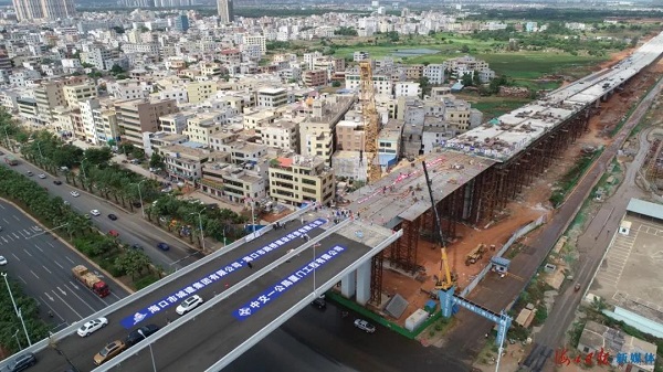 海秀快速路二期項目主線高架橋合龍。??谌請笥浾?陳長宇 攝