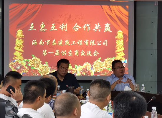 為培育并形成戰略認同、文化認同,共同發展、高度一致的命運共同體、利益共同體,深化合作關系,8月16日上午,海南萬泰建筑工程有限公司舉辦第一屆供應商大會暨勞務班組大會。公司常務副總顏利、副總張宇和來自全省各地的60多家優秀供應商代表及30多家勞務班組代表共聚一堂,就進一步鞏固長期良好合作關系進行交流座談。