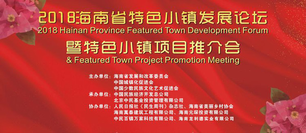 2018年12月2日,為貫徹黨中央、國(guó)務(wù)院關(guān)于推進(jìn)小城鎮(zhèn)建設(shè)的精神和習(xí)近平總書記在慶祝海南建省辦經(jīng)濟(jì)特區(qū)30周年大會(huì)上關(guān)于“發(fā)展鄉(xiāng)村旅游,打造一批體現(xiàn)熱帶風(fēng)情的精品小鎮(zhèn)”的重要講話精神,促進(jìn)特色小鎮(zhèn)和特色小城鎮(zhèn)的建設(shè)發(fā)展和少數(shù)民族文化保護(hù),落實(shí)國(guó)家發(fā)展改革委先后印發(fā)的《關(guān)于加快美麗特色小(城)鎮(zhèn)建設(shè)的指導(dǎo)意見》《關(guān)于規(guī)范推進(jìn)特色小鎮(zhèn)和特色小城鎮(zhèn)建設(shè)的若干意見》《關(guān)于建立特色小鎮(zhèn)和特色小城鎮(zhèn)高質(zhì)量發(fā)展機(jī)制的通知》的要求,進(jìn)一步規(guī)范特色小鎮(zhèn)建設(shè),推動(dòng)特色小鎮(zhèn)高質(zhì)量發(fā)展,由海南省發(fā)展與改革發(fā)展委員會(huì)、中國(guó)城鎮(zhèn)化促進(jìn)會(huì)、中國(guó)少數(shù)民族文化藝術(shù)促進(jìn)會(huì)發(fā)起主辦,由中國(guó)民族經(jīng)濟(jì)開發(fā)總公司、北京中民基業(yè)投資管理有限公司承辦的2018海南省特色小鎮(zhèn)發(fā)展論壇暨特色小鎮(zhèn)項(xiàng)目推介會(huì),在位于海南海口的中國(guó)(海南)改革發(fā)展研究院會(huì)議廳成功舉行。