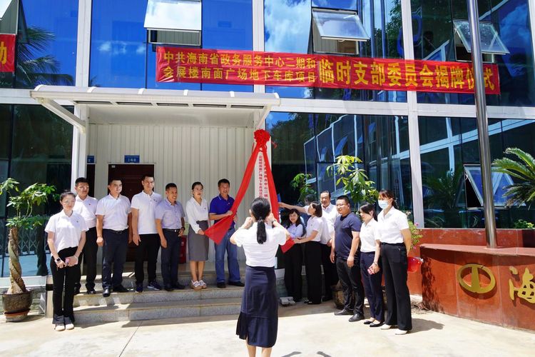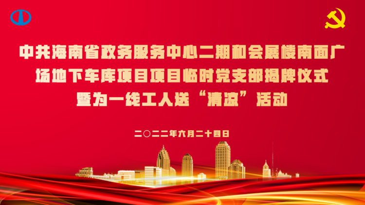 為進一步提高黨組織在基層的影響力,增強黨組織在項目工地上的凝聚力,貫徹落實“項目建在哪,支部就設在哪”的理念,經海南省住建行業黨委的批準,2022年6月24日,萬泰公司承建的省政務服務中心二期和會展樓南面廣場地下車庫項目臨時黨支部揭牌儀式暨為一線工人送“清涼”活動在項目部現場圓滿舉辦。受海南省住建廳領導的委托,省住建行業黨委專職副書記李述朝、省住建廳質安處副處長韓苗、省質安局副書記劉長征蒞臨現場指導揭牌儀式并參加為一線工人送“清涼”活動。公司黨支部書記曹珊珊、常務副總經理顏利、副總經理吳坤芳,項目臨時黨支部書記吳燕等相關人員參加了本次活動,儀式由公司黨支部副書記孟晨主持。