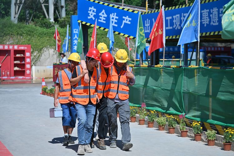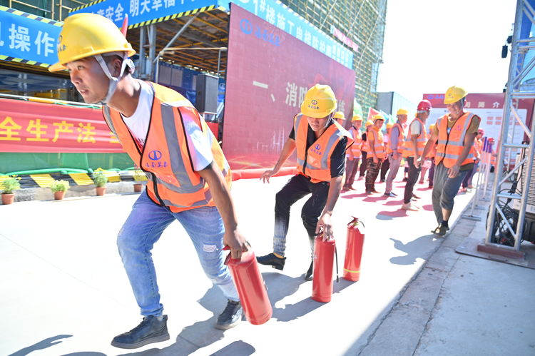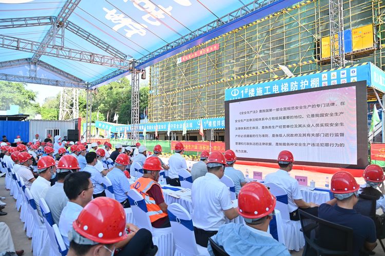 為貫徹落實習總書記關于安全生產重要論述,以黨建引領促進安全生產,全面提升項目質量管理水平,增強安全責任意識,按照上級相關主管部門對開展“安全生產月”活動的通知要求,結合第21個全國“安全生產月”,2022年6月28日,海南萬泰建筑工程有限公司在七彩瀾灣南區商業項目部成功舉辦了2022年“安全生產月”綜合應急演練觀摩會。省住建廳安全行業專家劉輝輝,澄邁縣住房和城鄉建設局莫丁,澄邁縣應急管理局冼厚霖,澄邁縣質監站王廣彬,中豪威爾房地產有限公司甲方代表孫志明,海南藍城君潤科技有限公司副總經理陳自衡、工程部經理張凡春,杭州巨烽建設工程項目管理有限公司總監朱冬風,公司常務副總經理顏利、副總經理吳坤芳等相關人員參加本次觀摩會。澄邁縣老城消防救援特勤站、同和醫院友情協助開展本次綜合應急演練。