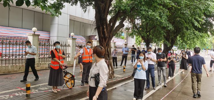 本次疫情突如其來(lái),核酸檢測(cè)工作時(shí)間緊迫,黨員志愿者們克服困難,到達(dá)指定點(diǎn)位開(kāi)展協(xié)調(diào)工作。“您好,請(qǐng)按順序排好隊(duì),保持一米距離;請(qǐng)大家提前打開(kāi)健康碼,避免網(wǎng)絡(luò)擁堵影響檢測(cè);你看這里就可以打開(kāi)健康碼;請(qǐng)佩戴好口罩……”秩序維護(hù)、測(cè)量體溫、提供咨詢引導(dǎo)、解決群眾困難、帶領(lǐng)孕婦及行動(dòng)不便的老人走綠色通道等等,從中午到晚上,大家各司其職,與醫(yī)務(wù)人員并肩作戰(zhàn),為檢測(cè)現(xiàn)場(chǎng)“保駕護(hù)航”,贏得了群眾的認(rèn)可與好評(píng)。