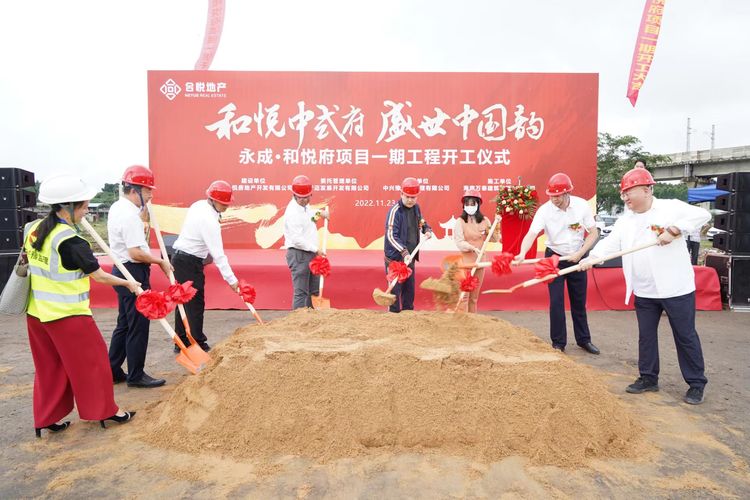 隨后,建設單位海南合悅房地產開發有限公司楊總正式宣布永成?和悅府項目(一期)開工。伴隨著隆隆的禮炮聲,楊總、顏總等相關領導為項目開工培土奠基,預祝項目開工大吉。