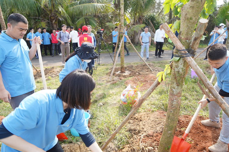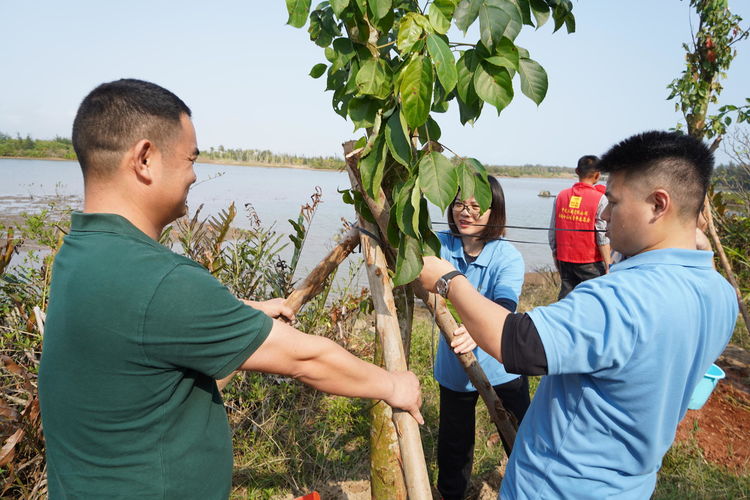 活動當天,艷陽高照,晴空萬里,大家紛紛拿著鐵鍬,拎起水桶,以十足的干勁與熱情積極投入到植樹播種中,挖坑、放苗、扶正、填土、澆水,一氣呵成,全然不顧揮灑的汗水。在大家的分工合作下,一棵棵新栽苗木迎風挺立,給初春的大地增添了盎然的生機和蓬勃的朝氣,形成了一道亮麗的風景線。海南萬泰公司黨支部書記曹珊珊及部分黨員紛紛表示,將會把本次實踐活動的所學所感融入到今后工作與生活中,不斷提升自我,努力為建設(shè)美麗新海南不斷地添磚加瓦。