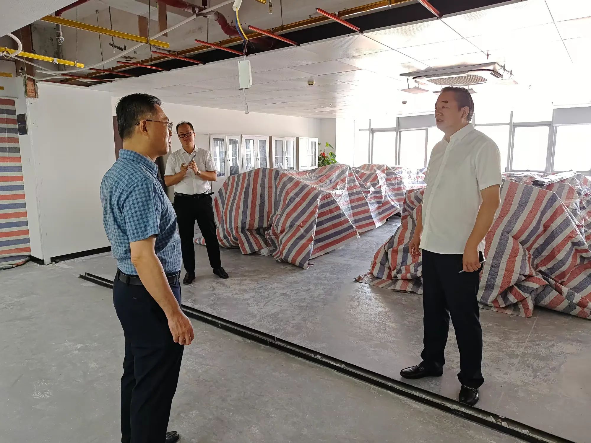 林青主委一行在公司總經(jīng)理顏利的帶領下查看了公司幾個因臺風“摩羯”而受損的辦公區(qū)域。在調研座談會上,公司總經(jīng)理顏利通過PPT圖片形式向林青主委一行介紹了本次受災受損情況,企業(yè)辦公區(qū)域積水、滲水嚴重,吊頂脫落、玻璃吹碎、設備損壞,多個項目部及工人生活區(qū)板房被吹塌、設備及電箱圍墻等受到嚴重破壞。顏利總表示,上述問題給企業(yè)造成了巨大的經(jīng)濟損失,嚴重影響了復工復產(chǎn)的進度,請各級政府部門能夠給予廣大企業(yè)更多的關懷和幫助,出臺政策及措施助力企業(yè)走出困境。