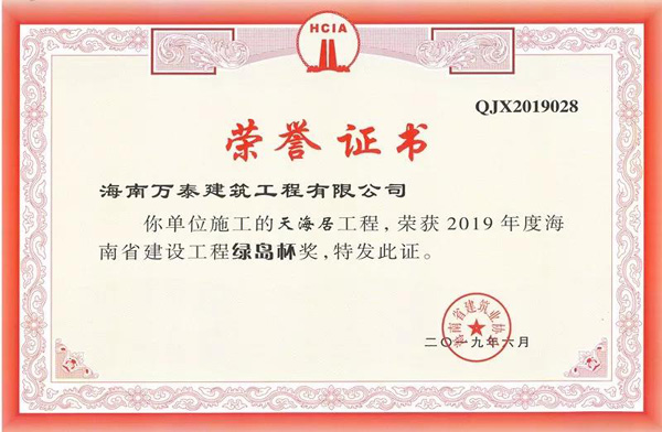 我們將把本次省優(yōu)榮譽當(dāng)做工作的動力,不斷學(xué)習(xí)、改進,為企業(yè)的發(fā)展、創(chuàng)造更多的精品工程做出努力。今后,海南萬泰將繼續(xù)以“創(chuàng)精品工程,立萬泰豐碑”為己任,用工匠精神詮釋每一個萬泰承建的工程項目。