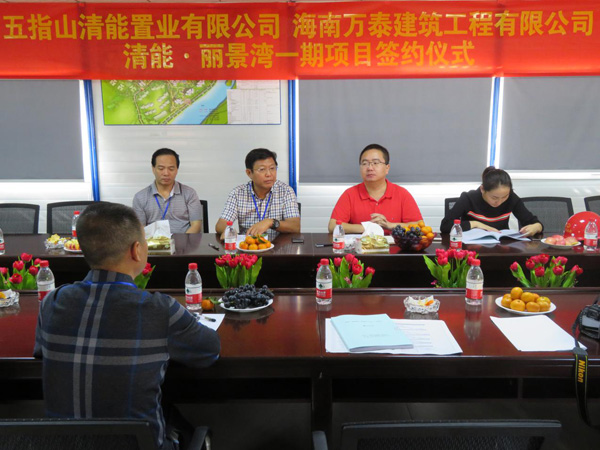 海南萬泰建筑工程有限公司總經理張小龍、工程部部長張小云、五指山清能置業有限公司執行董事羅曉東、項目總經理尹宏、總工程師向俊宜、工程部副經理彭愛明等共同參加了簽約儀式。