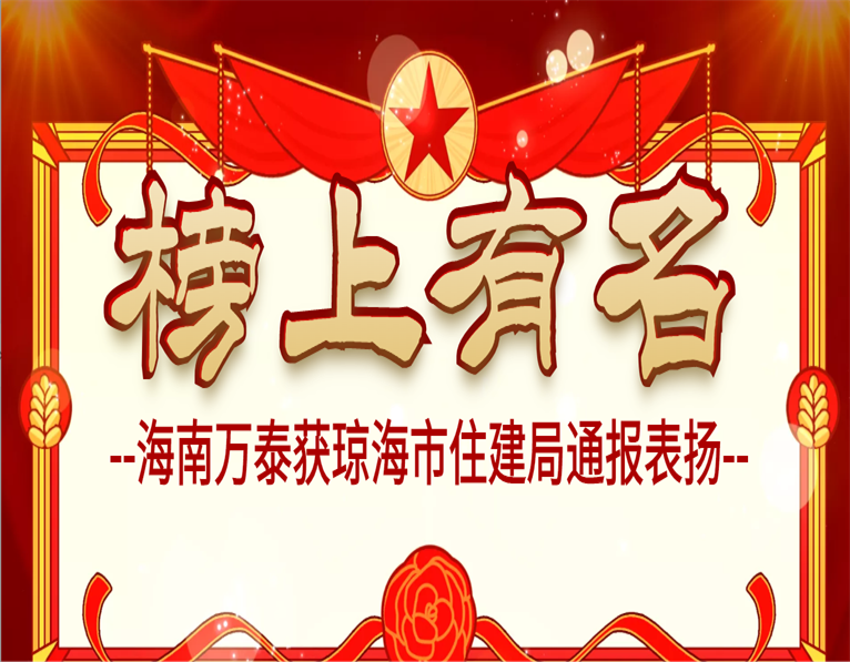 根據瓊海市住房和城鄉建設局《關于2021年“安全生產月”期間第三期建設施工安全“隱患紅黑榜”的通報》文件,海南萬泰承建的兆南·山水匯園第八期1#樓、2#樓項目獲瓊海市住房和城鄉建設局通報表揚,并記入安全生產示范工地“紅榜”名單。