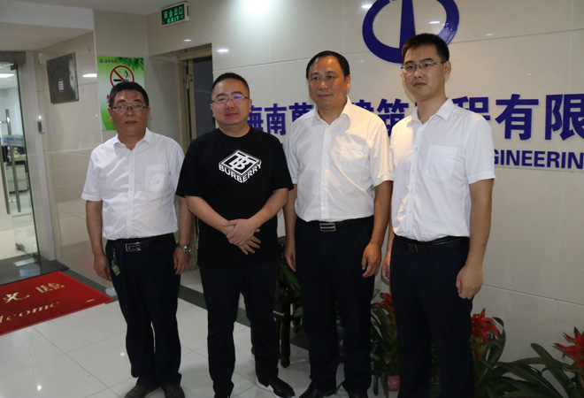 2020年5月7日,海南省省長沈曉明冒著酷暑赴海南綠筑裝配式產業基地調研考察,海南省住建廳副廳長劉聯偉、定安縣委書記陳軍、定安縣縣長李開文隨行,定安綠筑公司郭總予以熱情迎接并匯報項目情況。