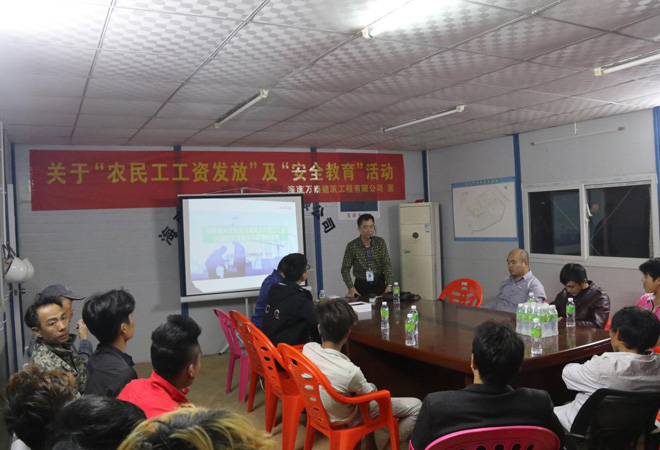 為做好年底農民工工資正常發放事宜,落實工地安全文明管理,12月20日晚,海南萬泰組織相關人員深入海口市(美蘭區)示范性綜合實踐基地項目,開展農民工資發放及安全教育培訓。