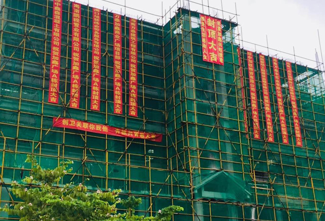 10月24日,海南萬泰建筑工程有限公司承建的瓊中縣加釵農場加鑫商業廣場項目施工現場彩旗飄飄,橫幅高掛。隨著主體建設的完成,瓊中縣加釵農場加鑫商業廣場項目A棟樓完成了階段性建設任務,順利封頂。